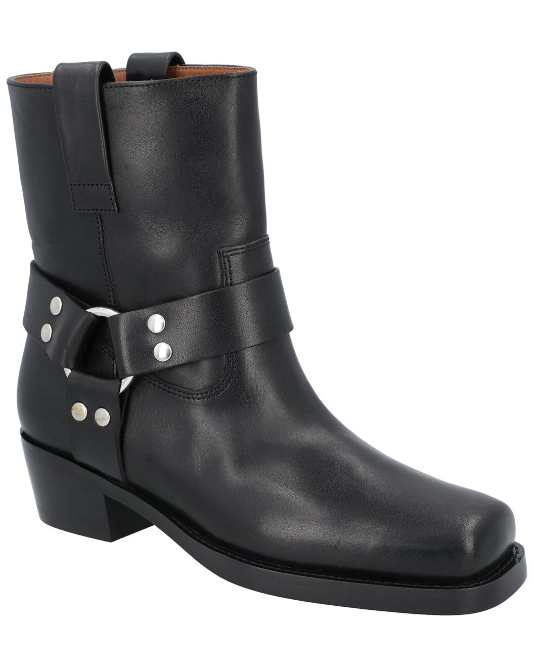 - About the brand: Bold designer footwear with contemporary Italian luxury. - Made in Italy - Roxy Ankle Leather Boot in black leather and silver-tone hardware with studded trim - Smooth leather insole - Smooth leather sole - 1.7in heel - 0.5in platform - 6.6in shaft - Please note: All measurements are approximate and were taken from a size 38; slight variations may occur. - The Boot Size Guide