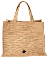- Color/material: natural raffia - Design details: gold-tone hardware, embroidered detailing - Interior design details: unlined - Measures 17.5in wide x 14in high x 9in deep - Top handles drop 9in - Removable shoulder strap drops 18in - Open top - Imported - Please note: All measurements were taken by hand and are approximate; slight variations may occur.