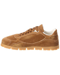 - About the brand: Classic, sporty, signature style from Italy. - Please note: Size selections are European. For US conversions, please reference size chart. - Made in Italy - Faded Suede Sneaker in cinnamon suede and gold-plated hardware with triangle logo accent - Lace-up closure - Lightly padded leather insole - Rubber sole with traction - Our products are 100% genuine. In some cases we purchase merchandise from trusted independent suppliers and not directly from the brand owner. In all cases we stand by the authenticity of every product sold on our site. - We are NOT an authorized dealer of this product.