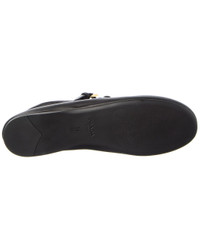 - About the brand: Classic, sporty, signature style from Italy. - Please note: Size selections are European. For US conversions, please reference size chart. - Made in Italy - Leather Ballerina Flat in black leather and gold-plated hardware with triangle logo accent - Buckle closure - Lightly padded leather insole - Smooth man-made sole - Our products are 100% genuine. In some cases we purchase merchandise from trusted independent suppliers and not directly from the brand owner. In all cases we stand by the authenticity of every product sold on our site. - We are NOT an authorized dealer of this product.