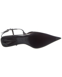 - About the brand: Classic, sporty, signature style from Italy. - Please note: Size selections are European. For US conversions, please reference size chart. - Made in Italy - Logo Leather Pointy-Toe Slingback Pump in silver leather and silver-tone hardware with T-strap and triangle heel with metal lettering logo - Adjustable ankle strap with buckle closure - Lightly padded leather insole - Smooth leather sole - 2in heel - Please note: All measurements are approximate and were taken from a size 37; slight variations may occur. - Our products are 100% genuine. In some cases we purchase merchandise from trusted independent suppliers and not directly from the brand owner. In all cases we stand by the authenticity of every product sold on our site. - We are NOT an authorized dealer of this product.