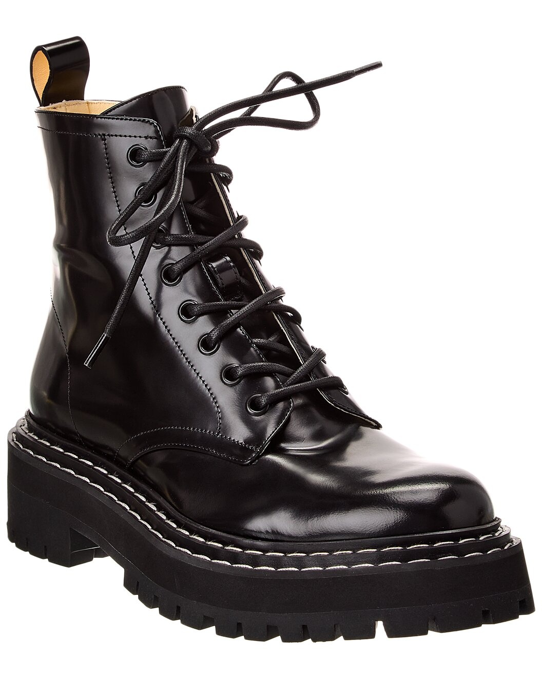 - Price as marked - Please note: Size selections are European. For US conversions, please reference size chart. - Made in Italy - Color/material: black leather - Design details: tonal hardware, inner side zipper - Lace-up closure - Lightly padded leather insole - Rubber lug sole - 2in heel - 1in platform - 6in shaft - 9in boot circumference - Please note: All measurements are approximate and were taken from a size 37; slight variations may occur. - The Boot Size Guide - Our products are 100% genuine. In some cases we purchase merchandise from trusted independent suppliers and not directly from the brand owner. In all cases we stand by the authenticity of every product sold on our site.