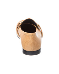 - About the Product: - Embossed Leather Loafers with Gold-Tone Monogram Hardware - Color/Pattern: Light Brown - Gold-Tone Hardware - Lightly Padded Leather Insole - Smooth Leather Sole - Slip-On Style - Monogram Plaque Detail - Embossed Leather - Made in Italy - Size & Fit: - Size selections are European - For US conversions, please reference size chart - Please Note: - Our products are 100% genuine. In some cases we purchase merchandise from trusted independent suppliers and not directly from the brand owner. In all cases we stand by the authenticity of every product sold on our site.
