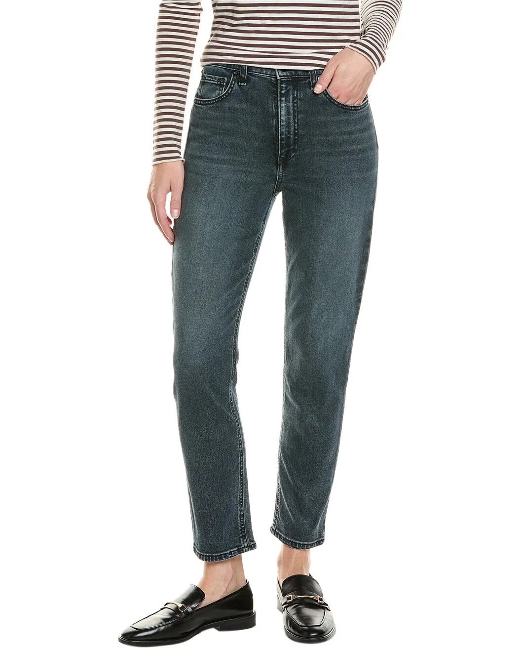 - About the brand: For more than twenty years, rag & bone has been committed to making timeless yet modern fashion with an understated edge. Inspired by New York with a strong focus on quality and comfort, every rag & bone style is distinctly original. - Nina High-Rise Ankle Cigarette in ziggy with belt loops, whiskering and fading details, and classic five-pocket styling - Inseam approximately 26.5in - 11in front rise; 14in back rise - Leg opening has an approximate 13in circumference - This item tends to run small (based on Member feedback). We recommend sizing up for your best fit. Model is 5'9.5 and is wearing a size 26. Measurements may vary slightly by size. - Zip fly with button closure - 98% cotton, 2% polyurethane - Machine wash - Made in the USA - The Women's Denim Guide - WARNING: CA Residents - Prop 65