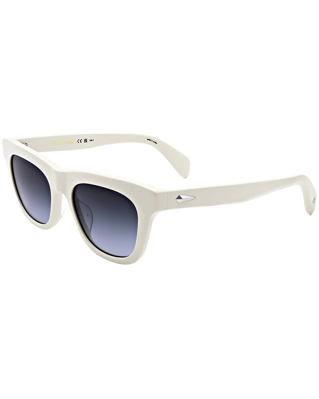 - About the brand: For more than twenty years, rag & bone has been committed to making timeless yet modern fashion with an understated edge. Inspired by New York with a strong focus on quality and comfort, every rag & bone style is distinctly original. - Frame shape: square - Frame color: white - Lens color: smoke gradient - These frames flatter those with an oval, round, diamond, triangle or oblong shaped face - Plastic lenses with 100% UV protection - Lens: 52mm wide - Bridge: 19mm wide - Arms: 145mm long - Imported - Model #: RNB1086-S-VK6-52 - The Eyewear Size Guide