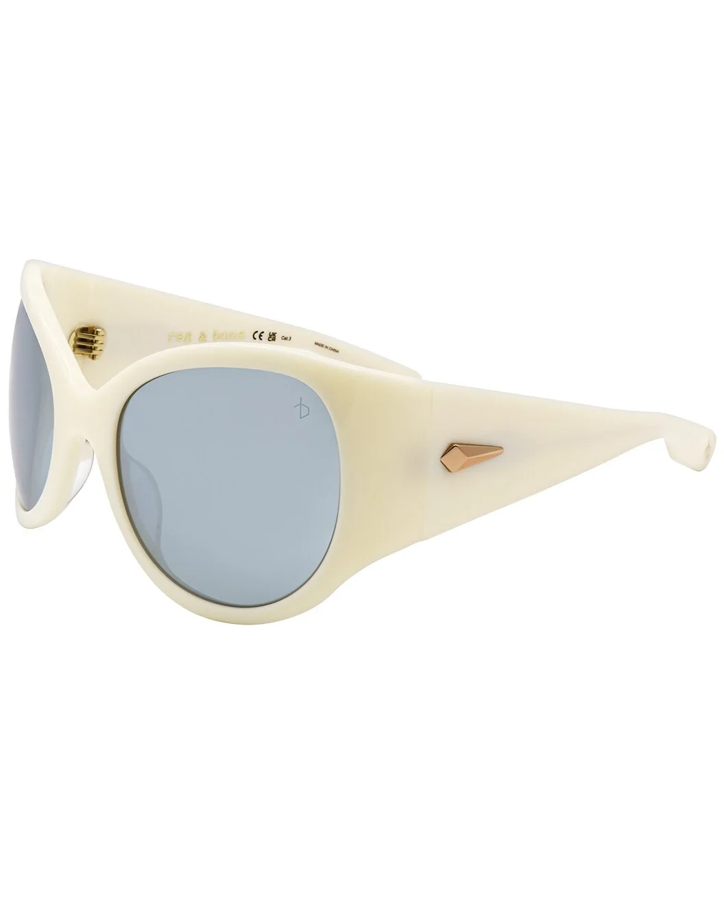 - About the brand: For more than twenty years, rag & bone has been committed to making timeless yet modern fashion with an understated edge. Inspired by New York with a strong focus on quality and comfort, every rag & bone style is distinctly original. - Frame shape: shield - Frame color: ivory - Lens color: silver mirrored - These frames flatter those with an oval, diamond, triangle or round shaped face - Plastic lenses with 100% UV protection - Lens: 56mm wide - Bridge: 24mm wide - Arms: 115mm long - Imported - Model #: RNB6004-S-SZJ-56 - The Eyewear Size Guide