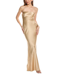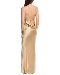 - Color/pattern: nude - Approximately 57in from shoulder to hem - Model is 5'9 and is wearing a size 4. Measurements may vary slightly by size. - Design details: draped neckline - Left side seam zipper with hook-and-eye closure - 95% silk, 5% spandex - Hand wash - Imported