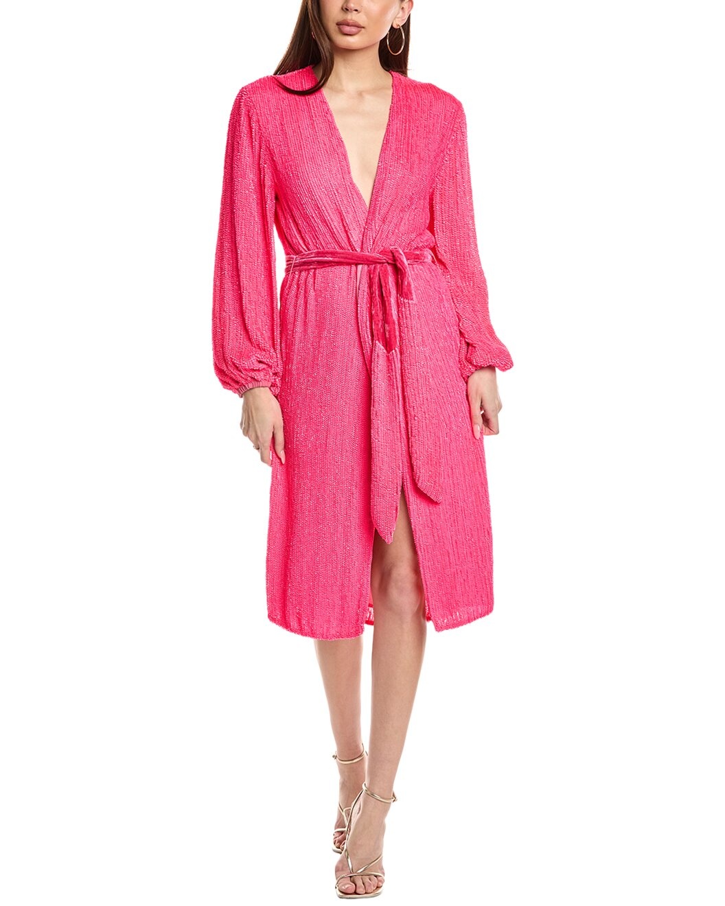 - Color/pattern: neon pink - Approximately 45in from shoulder to hem - Model is 5'9 and is wearing a size XS. Measurements may vary slightly by size. - Design details: balloon sleeves and velvet tie sash - Button closure - 100% viscose - Dry clean only - Imported
