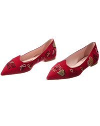 - About the brand: Effortless, timeless elegance. - Please note: Size selections are European. For US conversions, please reference size chart. - Made in Italy - I Love Grosgrain Flat in red grosgrain fabric with embroidered design and crystal embellishments - Lightly padded leather insole - Smooth leather sole - Our products are 100% genuine. In some cases we purchase merchandise from trusted independent suppliers and not directly from the brand owner. In all cases we stand by the authenticity of every product sold on our site.