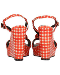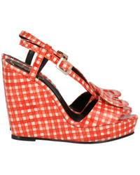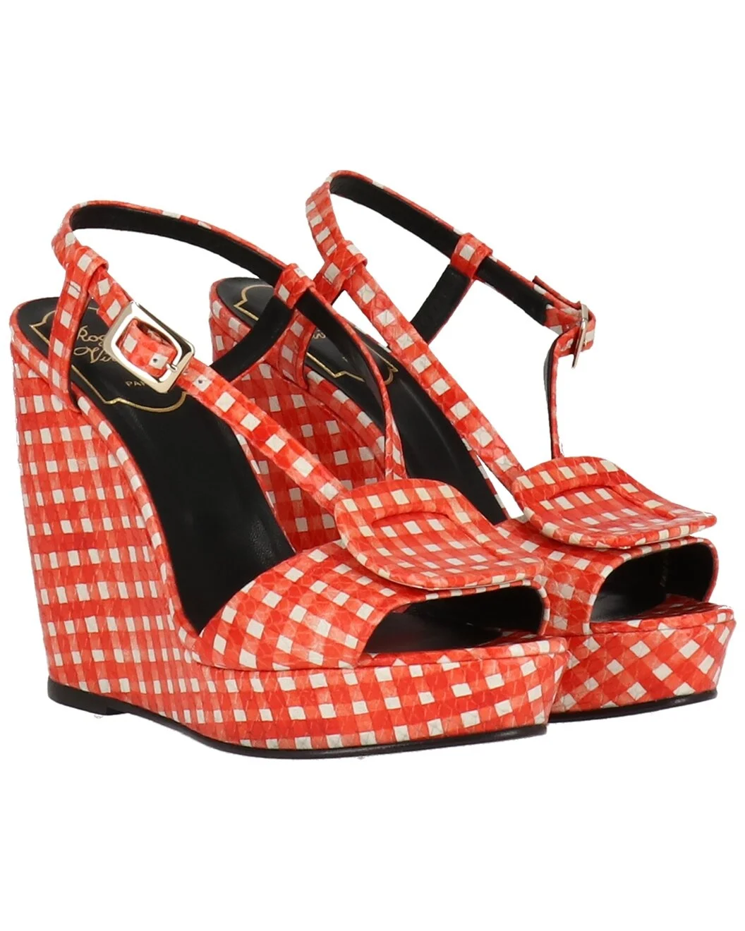 - About the brand: Effortless, timeless elegance. - Please note: Size selections are European. For US conversions, please reference size chart. - Made in Italy - Leather Wedge Sandal in multicolor leather and gold-tone hardware with buckled design, all over plaid print - Buckle closure - Smooth insole - Leather sole - 4in heel - 1.5in platform - Our products are 100% genuine. In some cases we purchase merchandise from trusted independent suppliers and not directly from the brand owner. In all cases we stand by the authenticity of every product sold on our site.