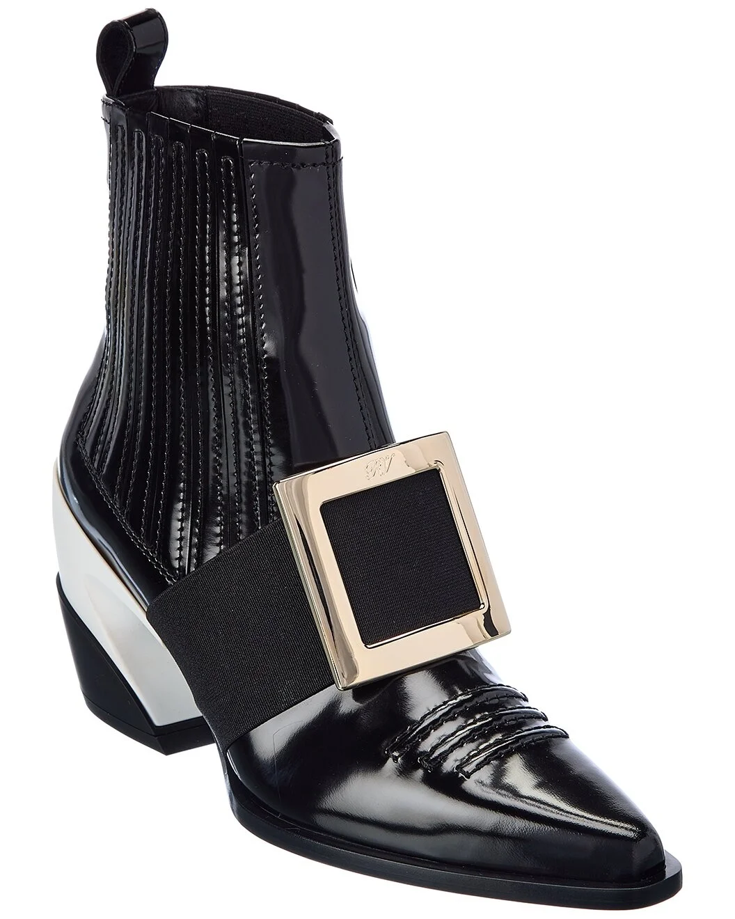 - About the brand: Effortless, timeless elegance. - Please note: Size selections are European. For US conversions, please reference size chart. - Made in Italy - Viv Tex Leather Bootie in black leather and gold-tone hardware with pull-on tab, elasticized buckle strap and white rubber heel - Elasticized slip-on style - Lightly padded leather insole - Smooth leather sole - 3in heel - 4.5in shaft - 9in boot circumference - Please note: All measurements are approximate and were taken from a size 37; slight variations may occur. - Our products are 100% genuine. In some cases we purchase merchandise from trusted independent suppliers and not directly from the brand owner. In all cases we stand by the authenticity of every product sold on our site.