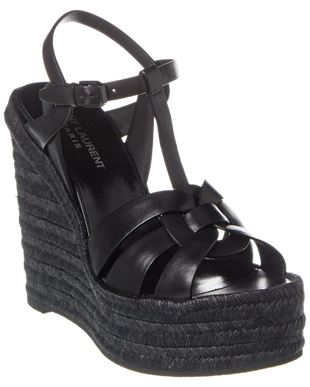 - Based on feedback from Members, this brand typically runs small. We suggest sizing up a half size for most styles. - About the brand: Iconic, modern glam. Tres chic! - Please note: Size selections are European. For US conversions, please reference size chart. - Made in Italy - Color/material: black leather - Design details: strappy design, black hardware, woven wedge - Adjustable ankle strap with buckle closure - Lightly padded leather insole - Man-made sole - 5.5in heel - 2in platform - Please note: All measurements are approximate and were taken from a size 37; slight variations may occur. - Our products are 100% genuine. In some cases we purchase merchandise from trusted independent suppliers and not directly from the brand owner. In all cases we stand by the authenticity of every product sold on our site.