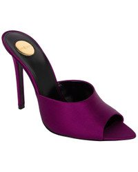 - About the brand: Iconic, modern glam. Tres chic! - This is an authentic, pre-loved piece. This item has never been worn. This item shows out of store condition. include tags, box and dust bag. - For more information on condition, please see our condition guide at the bottom - Color/material: purple silk - Design details: Peep-Toe Mules With An Almond Toe And Stiletto Heel, Featuring A Round Saint Laurent-Engraved Metal Plaque On The Insole. - 4.3in heel - Available only in Women's size 36 - The Pre-Loved Condition Guide - Our products are 100% genuine. In some cases we purchase merchandise from trusted independent suppliers and not directly from the brand owner. In all cases we stand by the authenticity of every product sold on our site.