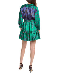 - About the brand: Parisian pieces through and through. - Balloon Sleeve Mini Dress in green multicolor with elasticized waistband - Please note: Size selections are European. For US conversions, please reference the size chart. - Approximately 34in from shoulder to hem - Model is 5'10.5 and is wearing a size 36. Measurements may vary slightly by size. - Button placket - 100% polyester - Machine wash - Imported