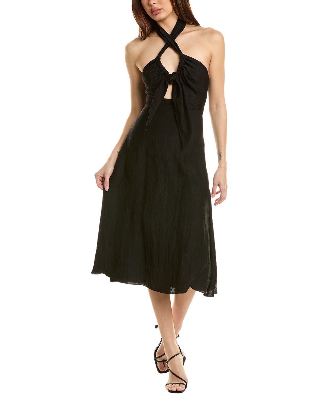 - About the brand: Parisian pieces through and through. - Halter Midi Dress in noir - Approximately 47in from shoulder to hem - Model is 5'10 and is wearing a size 34. Measurements may vary slightly by size. - Center back zipper with hook-and-bar - 82% acetate, 18% polyamide - Machine wash - Imported