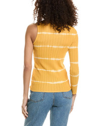 - About the brand: Parisian pieces through and through. - One-Sleeve Top in clementine with rib design - Approximately 24in from shoulder to hem - Model is 5'12 and is wearing a size 1. Measurements may vary slightly by size. - 63% viscose, 37% nylon - Hand wash - Imported