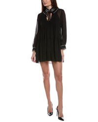- About the brand: Parisian pieces through and through. - Woven Mini Dress in noir with ribbed trim, pintuck pleats, and self-tie front - Please note: Size selections are European. For US conversions, please reference the size chart. - Approximately 30in from shoulder to hem - Model is 5'10.5 and is wearing a size 36. Measurements may vary slightly by size. - Slip-on styling - 100% polyester - Machine wash - Imported