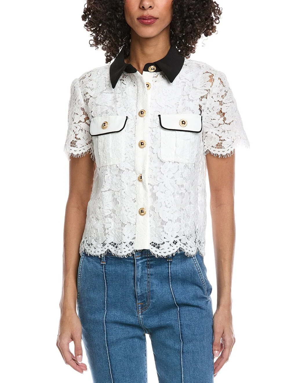 - Color/pattern: white - Approximately 20in from shoulder to hem - This item tends to run small (based on Member feedback). We recommend sizing up for your best fit. Model is 5'12 and is wearing a size 4. Measurements may vary slightly by size. - Design details: point collar, and front flap chest pockets - Button front - 70% polyamide, 30% cotton - Dry clean only - Imported