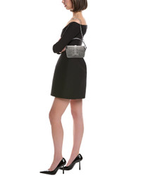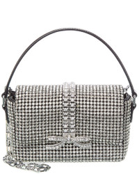 - Color/material: black leather - Design details: silver-tone hardware, crystal-embellished overlay and bow - Interior design details: leather lining, wall pocket - Measures 7in wide x 5in high x 2.5in deep - Top handle drops 5in - Removable shoulder strap drops 12in - Fold-over flap with magnetic closure - Imported - Please note: All measurements were taken by hand and are approximate; slight variations may occur.