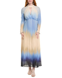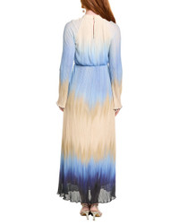 - Color/pattern: sky ombre - Approximately 57in from shoulder to hem - Model is 5'9 and is wearing a size 4. Measurements may vary slightly by size. - Design details: pleated mesh design, keyhole cutout - Keyhole button closure - Shell: 93% polyester, 7% spandex - Lining: 100% polyester - Dry clean only - Imported