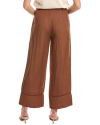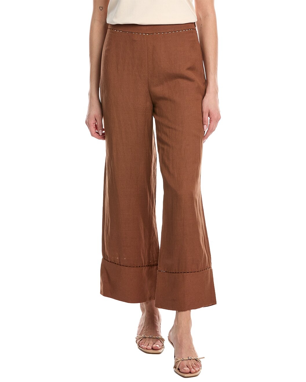 - About the Product: - Cropped Wide Leg Linen-Blend Pants with Ladderstitch Detail - Color/Pattern: Bronze - Left side seam zipper with hook-and-eye closure - Ladderstitch trim - Wide leg silhouette - Cuffed hem detail - 55% linen, 45% viscose - Lining: 100% cotton - Hand wash - Imported - Size & Fit: - Inseam approximately 28 inches; 13 inch rise - Model is 5'10 and is wearing a size small - Measurements may vary slightly by size
