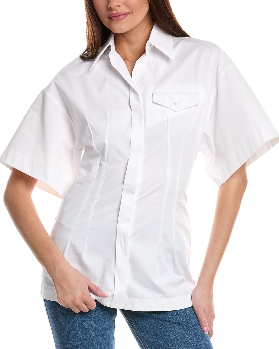 - Color/pattern: white - Approximately 29in from shoulder to hem - Model is 5'11 and is wearing a size 4. Measurements may vary slightly by size. - Design details: left chest pocket - Button front - 100% cotton - Machine wash - Imported