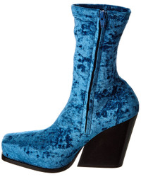 - About the brand: Sharp. Sophisticated. Sustainable. - Please note: Size selections are European. For US conversions, please reference size chart. - Made in Italy - Cowboy Crushed Velvet Boot in blue crushed velvet and tonal hardware with chunky heel - Lightly padded insole - Smooth man-made sole - 4.5in heel - 8in shaft - 9in boot circumference - Please note: All measurements are approximate and were taken from a size 37; slight variations may occur. - The Boot Size Guide - Our products are 100% genuine. In some cases we purchase merchandise from trusted independent suppliers and not directly from the brand owner. In all cases we stand by the authenticity of every product sold on our site.