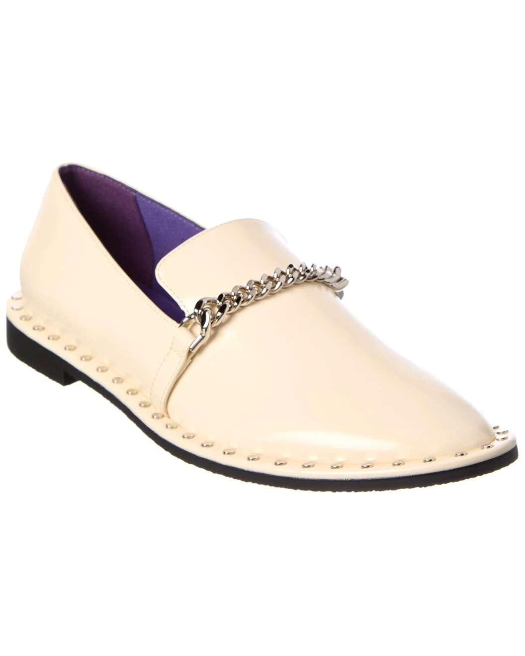 - About the brand: Sharp. Sophisticated. Sustainable. - Please note: Size selections are European. For US conversions, please reference size chart. - Made in Italy - Falabella Loafer in white vegan-friendly faux leather and silver-tone hardware with chain accent and stud embellishments - Lightly padded insole - Man-made sole - Our products are 100% genuine. In some cases we purchase merchandise from trusted independent suppliers and not directly from the brand owner. In all cases we stand by the authenticity of every product sold on our site. - WARNING: - CA Residents - Prop 65