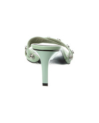 - Please note: Size selections are European. For US conversions, please reference size chart. - Made in Italy - Color/material: mint green leather - Design details: silver-tone hardware, snap embellishments - Lightly padded leather insole - Smooth leather sole - 3in heel - Please note: All measurements are approximate and were taken from a size 37; slight variations may occur. - Our products are 100% genuine. In some cases we purchase merchandise from trusted independent suppliers and not directly from the brand owner. In all cases we stand by the authenticity of every product sold on our site.