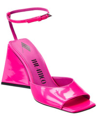 - Please note: Size selections are European. For US conversions, please reference size chart. - Made in Italy - Color/material: fluro pink faux patent leather - Design details: silver-tone hardware, angled heel and squared toe - Adjustable ankle strap with buckle closure - Lightly padded leather insole - Smooth leather sole - 3.5in heel - Please note: All measurements are approximate and were taken from a size 37; slight variations may occur.