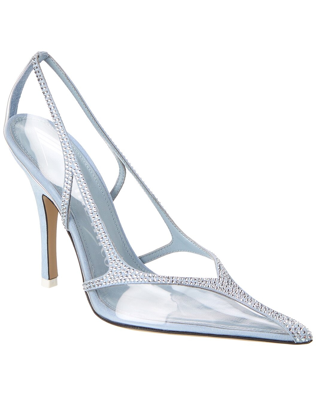 - Please note: Size selections are European. For US conversions, please reference size chart. - Made in Italy - Color/material: blue suede and transparent vinyl - Design details: rhinestone embellishments - Lightly padded leather insole - Smooth leather sole - 4.5in heel - Please note: All measurements are approximate and were taken from a size 37; slight variations may occur. - Our products are 100% genuine. In some cases we purchase merchandise from trusted independent suppliers and not directly from the brand owner. In all cases we stand by the authenticity of every product sold on our site. - WARNING: - CA Residents - Prop 65
