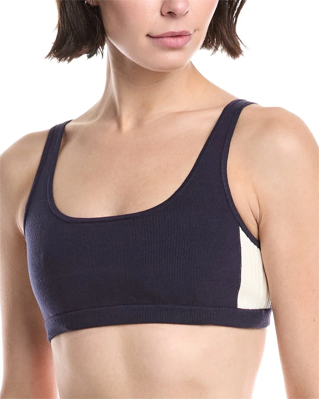 - Color/pattern: navy - Approximately 10in from shoulder to hem - Model is 5'12 and is wearing a size small. Measurements may vary slightly by size. - Design details: square neck, and ribbed trim - Slip-on styling - 76% rayon, 17% polyamide, 5% polyamide, 2% elastane - Machine wash - Imported