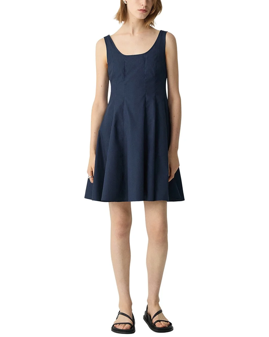 Sleeveless Fit-and-Flare Dress in Sleek Poplin