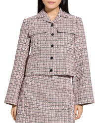 - About the brand: Theory believes the perfect outfit can change the way you feel. For over 25 years, Theory has developed innovative fabrics and highly functional pieces that feel great and fit perfectly. Theory's seasonal collections are versatile, expertly tailored and easy-to wear. - Color/pattern: pink multi - Design details: A cropped jacket with A-line sleeves, a shirt collar, exposed button closure, and flap patch pockets at chest. - 64% cotton, 19% polyester, 15% viscose, 2% other fibers - Dry clean only - Imported