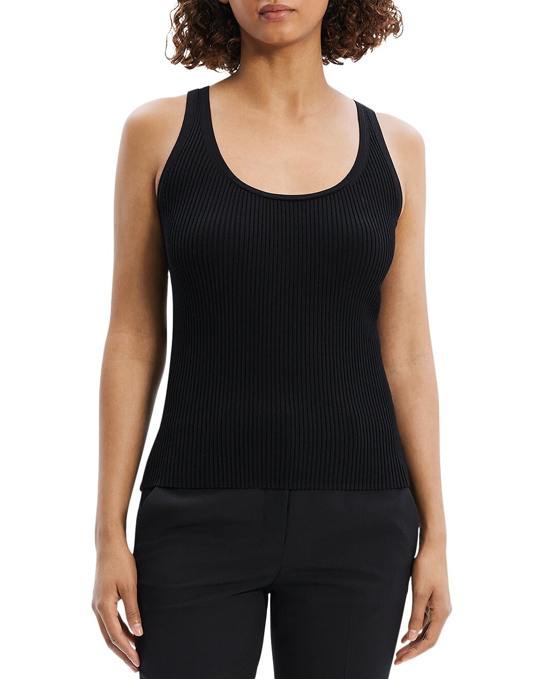 - About the brand: Theory believes the perfect outfit can change the way you feel. For over 25 years, Theory has developed innovative fabrics and highly functional pieces that feel great and fit perfectly. Theory's seasonal collections are versatile, expertly tailored and easy-to wear. - Rib Tank in black - Fitted tank top in a 4x4 rib. - 83% viscose, 17% polyester - Machine wash - Imported