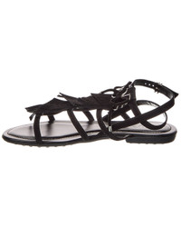 - About the brand: Timeless designs, hand-crafted in Italy. - Please note: Size selections are European. For US conversions, please reference size chart. - Made in Italy - Gomma Suede Sandal in black suede and silver-tone hardware with logo and fringe accent - Adjustable ankle strap with buckle closure - Lightly padded leather insole - Man-made sole - Our products are 100% genuine. In some cases we purchase merchandise from trusted independent suppliers and not directly from the brand owner. In all cases we stand by the authenticity of every product sold on our site.
