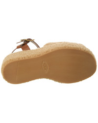 WEDGE SANDALS IN LEATHER AND WOOL - BROWN