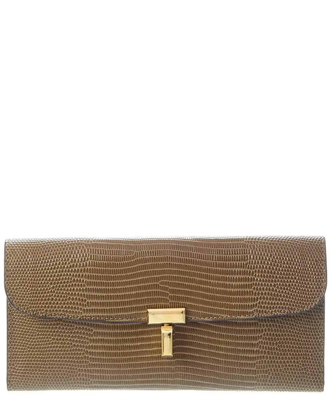 - Made in Spain - Color/material: brown embossed leather - Design details: gold-tone hardware - Interior design details: divided leather interior, card slots, bill compartment - Measures 8in wide x 4in high x 1in deep - Fold-over flap with turnlock closure - Please note: All measurements were taken by hand and are approximate; slight variations may occur. - Our products are 100% genuine. In some cases we purchase merchandise from trusted independent suppliers and not directly from the brand owner. In all cases we stand by the authenticity of every product sold on our site.