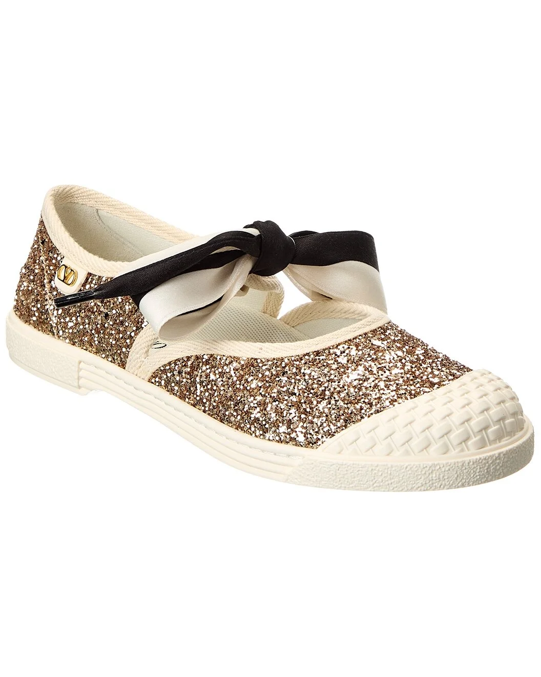 - About the brand: Signature elegance with a modern aesthetic. - Please note: Size selections are European. For US conversions, please reference size chart. - Based on feedback from Members, this brand typically runs small. We suggest sizing up a half size for most styles. - Made in Italy - Glitter Sneaker in gold glitter and gold-tone hardware with VLogo accent, self-tie ribbon bow and rubber toe - Moderately padded footbed - Rubber sole with traction - Our products are 100% genuine. In some cases we purchase merchandise from trusted independent suppliers and not directly from the brand owner. In all cases we stand by the authenticity of every product sold on our site.