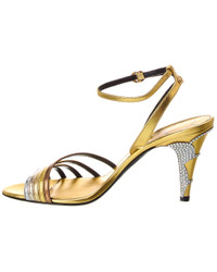 - About the brand: Signature elegance with a modern aesthetic. - Please note: Size selections are European. For US conversions, please reference size chart. - Based on feedback from Members, this brand typically runs small. We suggest sizing up a half size for most styles. - Made in Italy - Ladycrush 85 Leather Sandal in gold, silver and bronze leather and gold-tone hardware with VLogo accent and embellished heel - Adjustable ankle strap with buckle closure - Lightly padded leather insole - Smooth leather sole - 3.75in heel - Please note: All measurements are approximate and were taken from a size 37; slight variations may occur. - Our products are 100% genuine. In some cases we purchase merchandise from trusted independent suppliers and not directly from the brand owner. In all cases we stand by the authenticity of every product sold on our site.