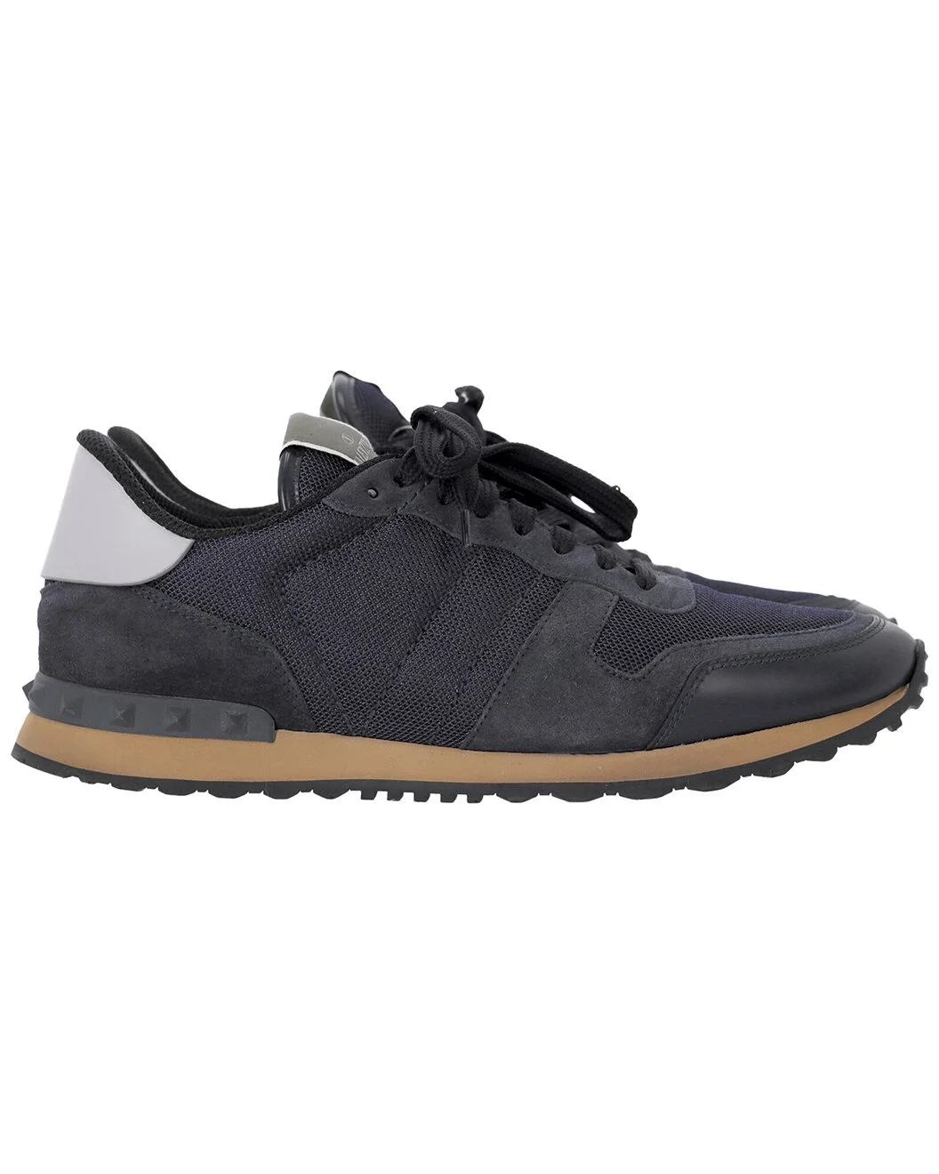 - About the brand: Signature elegance with a modern aesthetic. - This is an authentic, pre-loved piece. This item is in excellent condition, but may show slight signs of wear. This item shows unused or used once, but as good as new. no sign of wear. - For more information on condition, please see our condition guide at the bottom - Color/material: navy blue polyester - Design details: The Valentino Garavani Rockrunner Sneakers In Navy Blue Mixed Media Offer A Perfect Balance Of Sophistication And Street-Style Edge. Crafted From A Blend Of Premium Materials, Including Smooth Leather And Durable Nylon, These Sneakers Feature The Signature Rockstud Embellishments For A Touch Of Luxury. The Navy Blue Colorway Adds Versatility, Allowing These Sneakers To Complement A Wide Range Of Outfits, Making Them A Must-Have Addition To Any Modern Wardrobe. - 0.78in heel - 10.8in insole length - Accompanied by dust bag, box - Available only in Men's size 42.5 - The Pre-Loved Condition Guide - Our products are 100% genuine. In some cases we purchase merchandise from trusted independent suppliers and not directly from the brand owner. In all cases we stand by the authenticity of every product sold on our site.