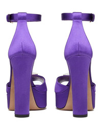 ONE STUD OPEN-TOE SATIN PLATFORM PUMP WITH STUD AND CRYSTALS 120MM