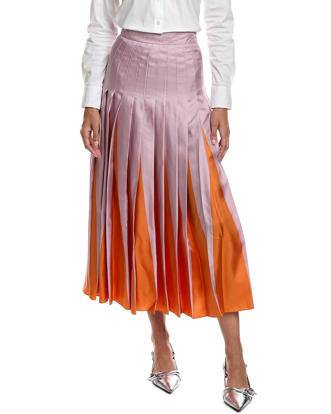 - About the brand: Signature elegance with a modern aesthetic. - Pleated Silk Maxi Skirt in rose bon bon and orange - Please note: Size selections are European. For US conversions, please reference the size chart. - Approximately 36in from waist to hem - Model is 5'9 and is wearing a size 36. Measurements may vary slightly by size. - Left side seam zipper with hook-and-eye closure - 100% silk - Dry clean only - Made in Italy - Our products are 100% genuine. In some cases we purchase merchandise from trusted independent suppliers and not directly from the brand owner. In all cases we stand by the authenticity of every product sold on our site.