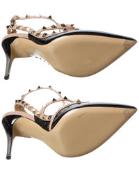 - This is an authentic, pre-loved piece. - This item shows scuffed soles. - Based on feedback from Members, this brand typically runs small. We suggest sizing up a half size for most styles. - About the brand: Signature elegance with a modern aesthetic. - Please note: Size selections are European. For US conversions, please reference size chart. - Made in Italy - Rockstud Caged 100 Patent Pump in black patent leather with platinum-finish rockstuds and powder leather trim - Adjustable ankle strap with buckle closure - Lightly padded leather insole - Smooth leather sole - 4in heel - Please note: All measurements are approximate and were taken from a size 37; slight variations may occur. - Our products are 100% genuine. In some cases we purchase merchandise from trusted independent suppliers and not directly from the brand owner. In all cases we stand by the authenticity of every product sold on our site