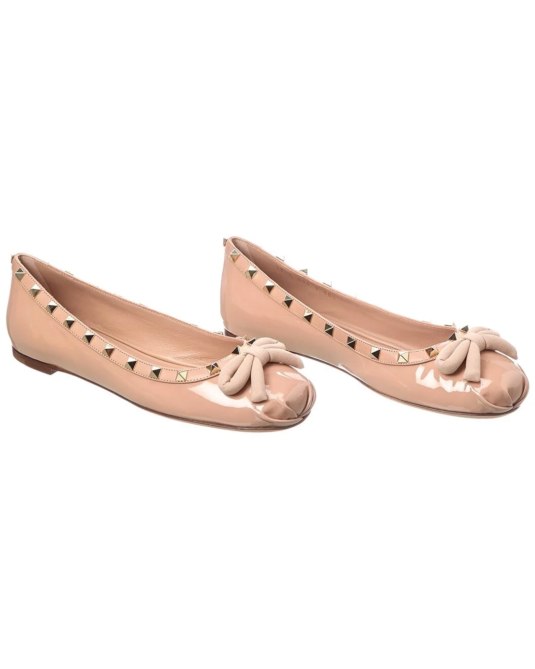 - This is an authentic, pre-loved piece. - This item shows stained soles. - About the brand: Signature elegance with a modern aesthetic. - Please note: Size selections are European. For US conversions, please reference size chart. - Based on feedback from Members, this brand typically runs small. We suggest sizing up a half size for most styles. - Made in Italy - Rockstud Patent Ballerina Flat in nude pink patent leather with padded bow and platinum-finish rockstuds - Lightly padded leather insole - Smooth leather sole - Our products are 100% genuine. In some cases we purchase merchandise from trusted independent suppliers and not directly from the brand owner. In all cases we stand by the authenticity of every product sold on our site.