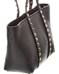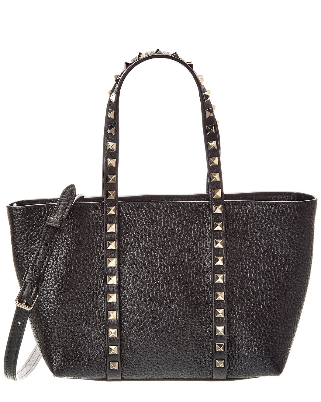 - About the brand: Signature elegance with a modern aesthetic. - Made in Italy - Color/material: black leather - Design details: Platinum-finish hardware; Leather with Signature Rockstud trim - Interior design details: One compartment, logo stamp - Measures 6.3in high x 4in deep - Top handles drop 5.1in - Adjustable and removable shoulder strap drops 18.5in - Zipper closure - Our products are 100% genuine. In some cases we purchase merchandise from trusted independent suppliers and not directly from the brand owner. In all cases we stand by the authenticity of every product sold on our site.