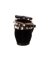 - About the brand: Signature elegance with a modern aesthetic. - Please note: Size selections are European. For US conversions, please reference size chart. - Based on feedback from Members, this brand typically runs small. We suggest sizing up a half size for most styles. - Made in Italy - Rockstud Velvet & Leather Flat in black velvet and leather with platinum-finish rockstuds and padded bow - Adjustable ankle strap with buckle closure - Lightly padded leather insole - Smooth leather sole - Our products are 100% genuine. In some cases we purchase merchandise from trusted independent suppliers and not directly from the brand owner. In all cases we stand by the authenticity of every product sold on our site.