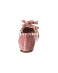 - About the brand: Signature elegance with a modern aesthetic. - Please note: Size selections are European. For US conversions, please reference size chart. - Based on feedback from Members, this brand typically runs small. We suggest sizing up a half size for most styles. - Made in Italy - Rockstud Velvet & Leather Flat in pink velvet and leather with platinum-finish rockstuds and padded bow - Adjustable ankle strap with buckle closure - Lightly padded leather insole - Smooth leather sole - Our products are 100% genuine. In some cases we purchase merchandise from trusted independent suppliers and not directly from the brand owner. In all cases we stand by the authenticity of every product sold on our site.