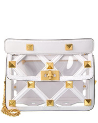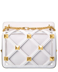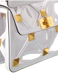 - About the brand: Signature elegance with a modern aesthetic. - Made in Italy - Roman Stud Medium Leather & Vinyl Shoulder Bag in white leather and transparent vinyl and gold-tone hardware with Roman studs - Interior design details: unlined, interior pockets - Measures 9.5in wide x 6.5in high x 3in deep - Top handle drops 4in - Removable shoulder strap drops 22in - Fold-over flap with turnlock closure - Please note: All measurements were taken by hand and are approximate; slight variations may occur. - Our products are 100% genuine. In some cases we purchase merchandise from trusted independent suppliers and not directly from the brand owner. In all cases we stand by the authenticity of every product sold on our site.