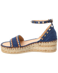 - About the brand: Signature elegance with a modern aesthetic. - Please note: Size selections are European. For US conversions, please reference size chart. - Based on feedback from Members, this brand typically runs small. We suggest sizing up a half size for most styles. - Made in Italy - VLogo 55 Denim Espadrille in blue multicolor tweed and denim fabric with platinum-finish rockstuds and jute trim - Adjustable ankle strap with buckle closure - Smooth leather insole - Smooth man-made sole - 2in heel - 1.25in platform - Please note: All measurements are approximate and were taken from a size 37; slight variations may occur. - Our products are 100% genuine. In some cases we purchase merchandise from trusted independent suppliers and not directly from the brand owner. In all cases we stand by the authenticity of every product sold on our site.